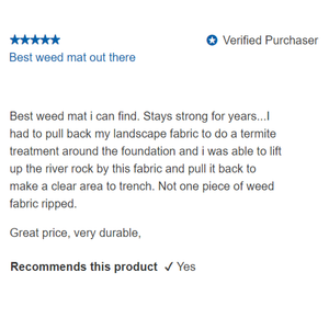 If you are looking for the best weed mat for suppressing weed growth, Weed-X is the number-one landscaping fabric for stopping weeds. Weed-X uses a unique dual-layer fabric that lets water through but stops weeds before they even have a chance to start and works well in permanent landscape beds that don't get much foot traffic.